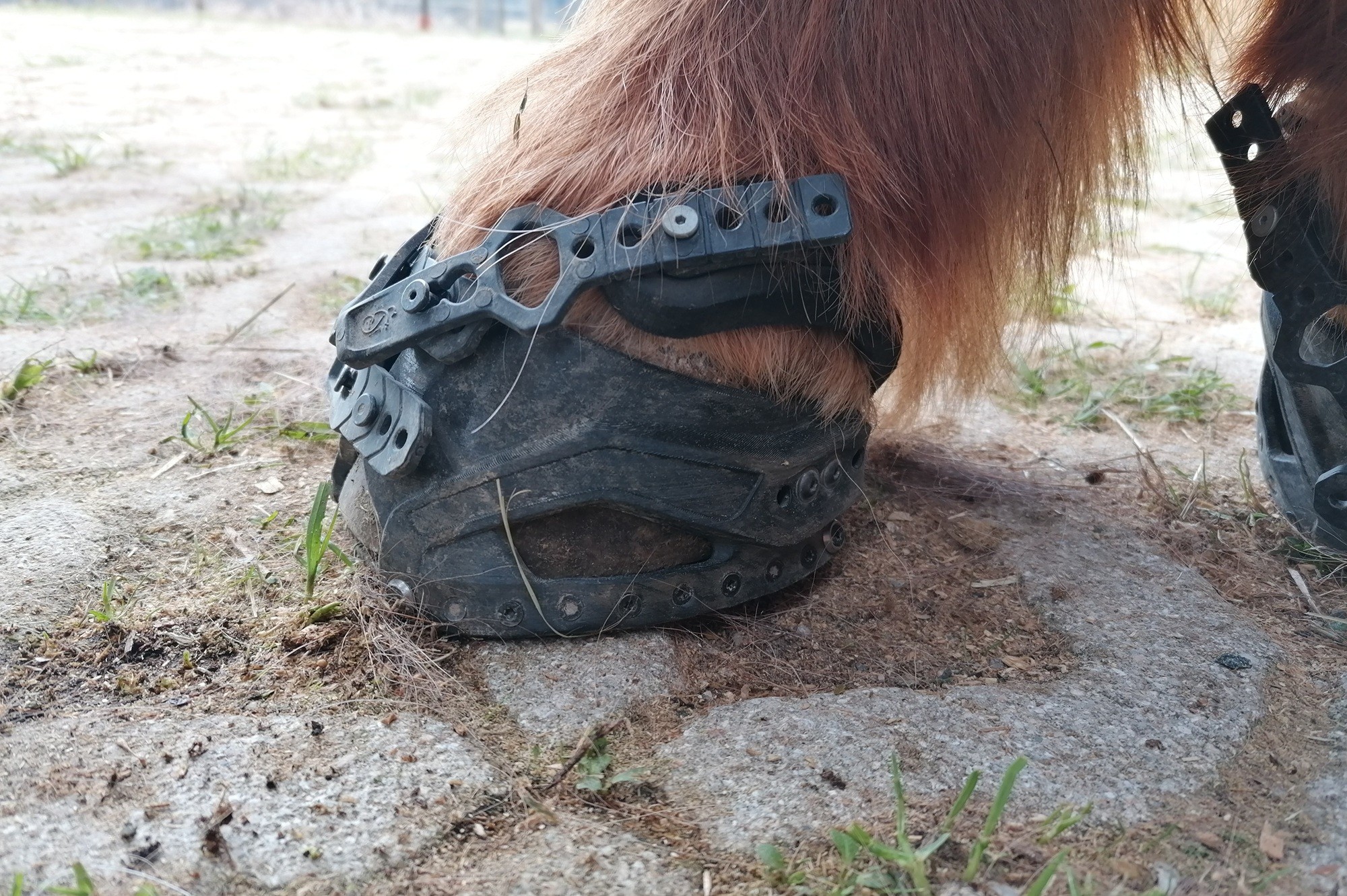 Die Goodsmith Hufschuhe sind die ersten Hufschuhe auf dem Markt, die absolut individuell anpassbar sind. Die Schuhe werden vor Ort am Pferd angepasst. Die Platte kann individuell gewählt werden, diese wird dann zurecht geflext. An die Platte werden die Seitenteile geschraubt. Der richtige Sitz der Seitenteile ist ausschlaggebend, damit der Schuh optimal passt. Auch die Trachtenriemen und der Gaiter können versetzt werden. Insgesamt gibt es hier diverse Möglichkeiten, weshalb der Schuh an verschiedenste, auch nicht optimale Hufsituationen gut anpassbar ist. Zudem kann der Abrollpunkt an der Zehe perfekt angebracht werden.